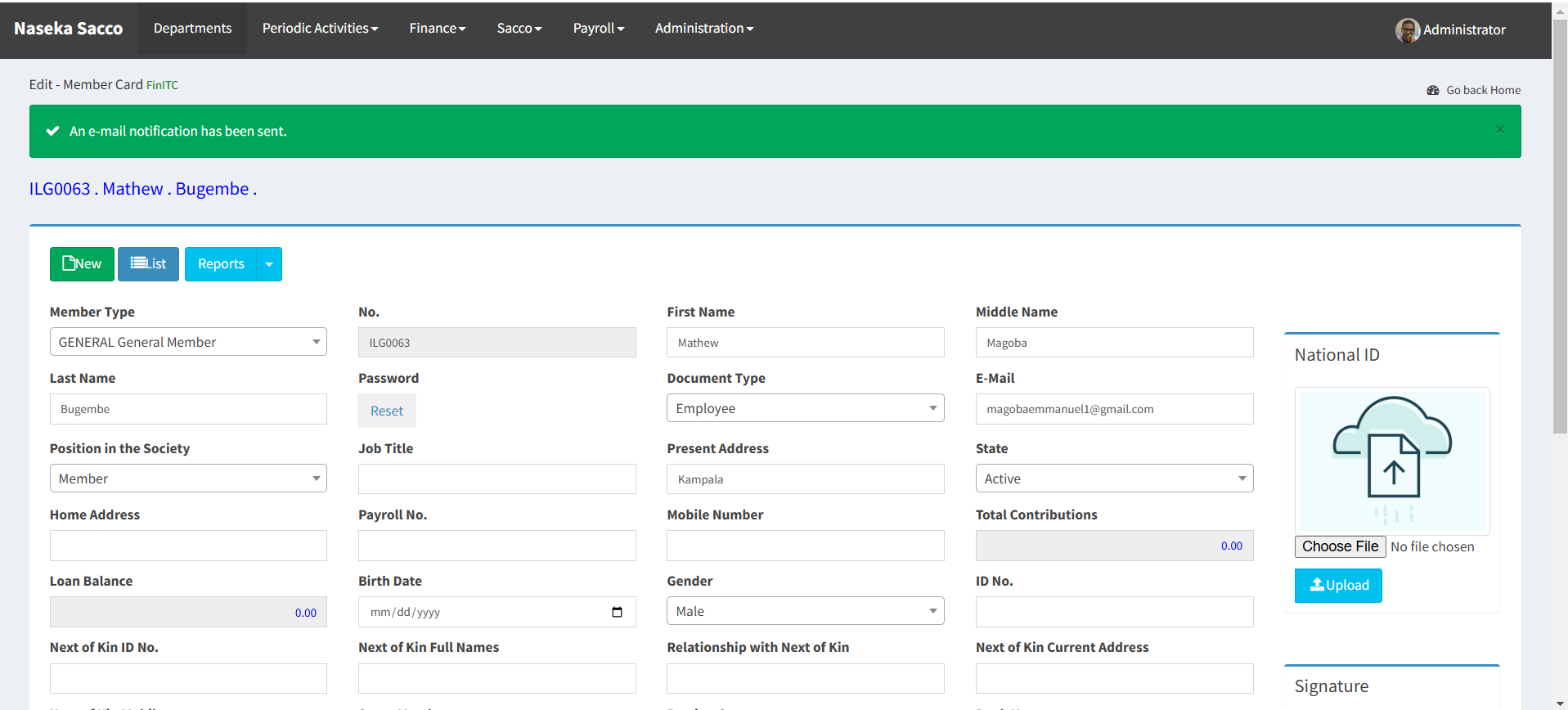 The FinITC Sacco Management System is a fully integrated relational database system that lets you enter and maintain financial and other sacco business activities in one place. The FinITC Sacco System has modules such as General Ledger, Receivables, Cash Management, Loan Management and Investments.