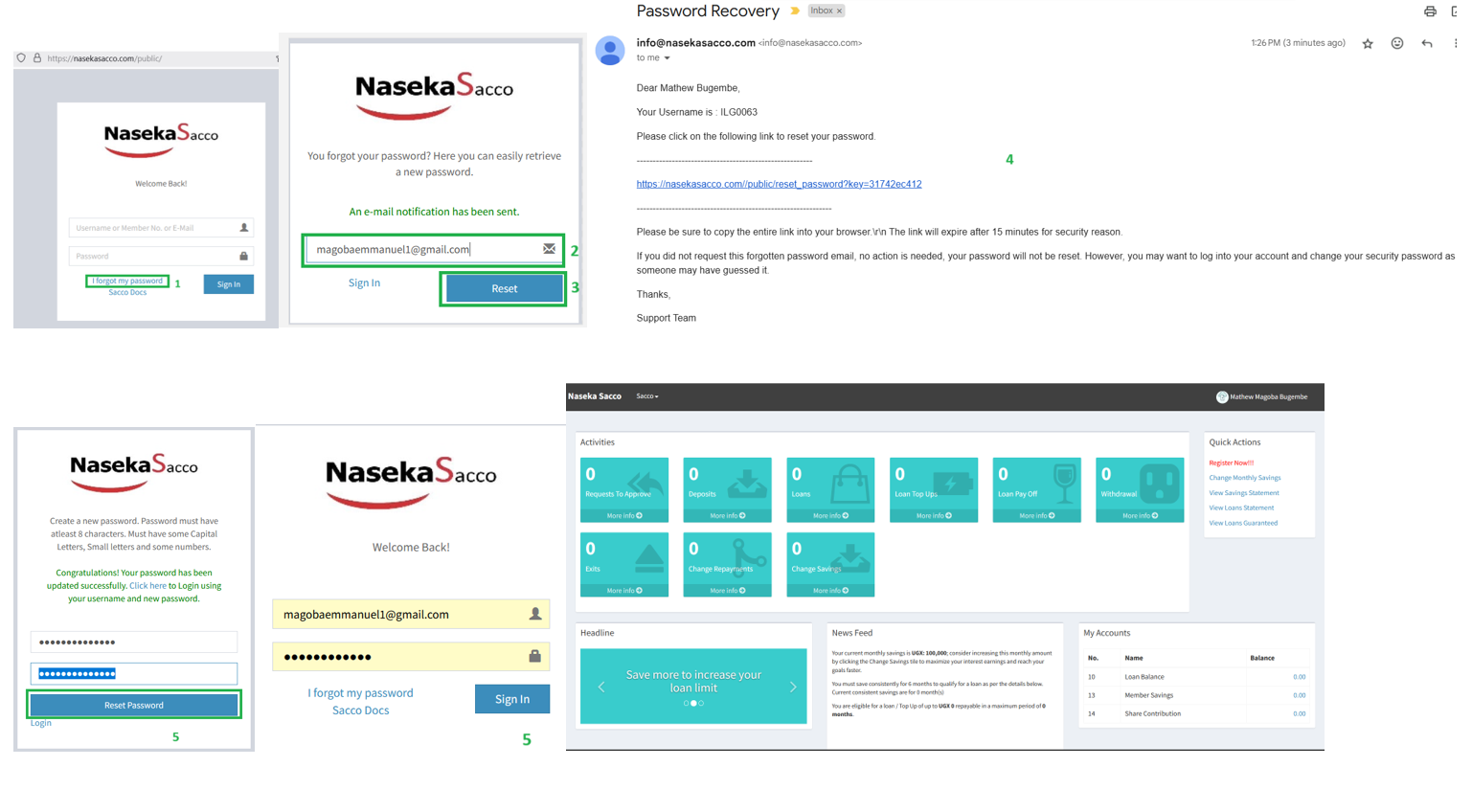To create an account, contact your Sacco Administrators. An e-mail shall be set to you containing your username and a One Time Password.