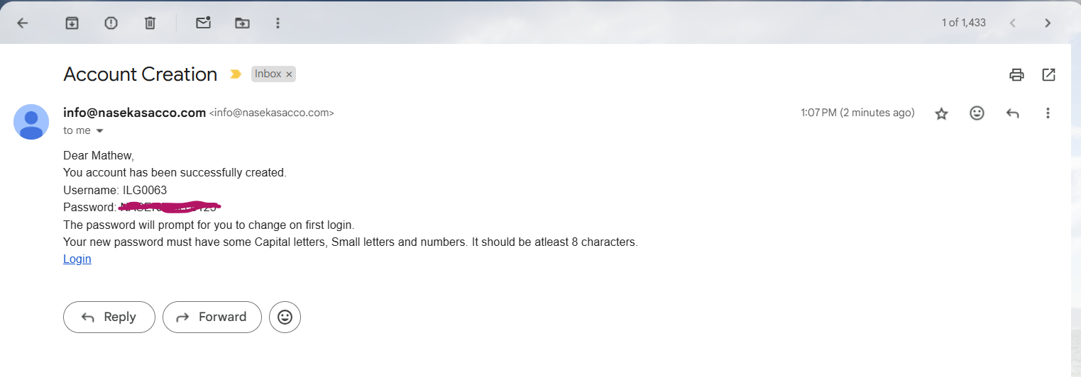 Member Accounts are created by the SACCO Administrators by creating a member card which sends and e-mail notification to the member.
